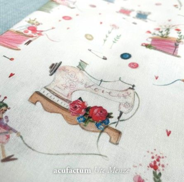 Zwischen Knöpfen, Garn und Nähmaschine ist was los! Kleine Elfen zaubern wunderbares in der Nähstube und sind ganz vertieft in ihr Fadenspiel. Unser Herz hüpft höher bei diesen zauberhaften Motiven.