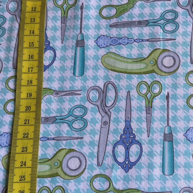 35 cm Patchworkstoff „Schere und Rollschneider“