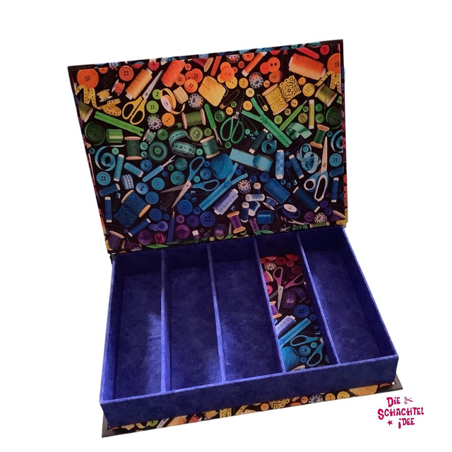 Durch die Einteilung hat sie fünf Fächer, ideal um Garnrollen zu sortieren.