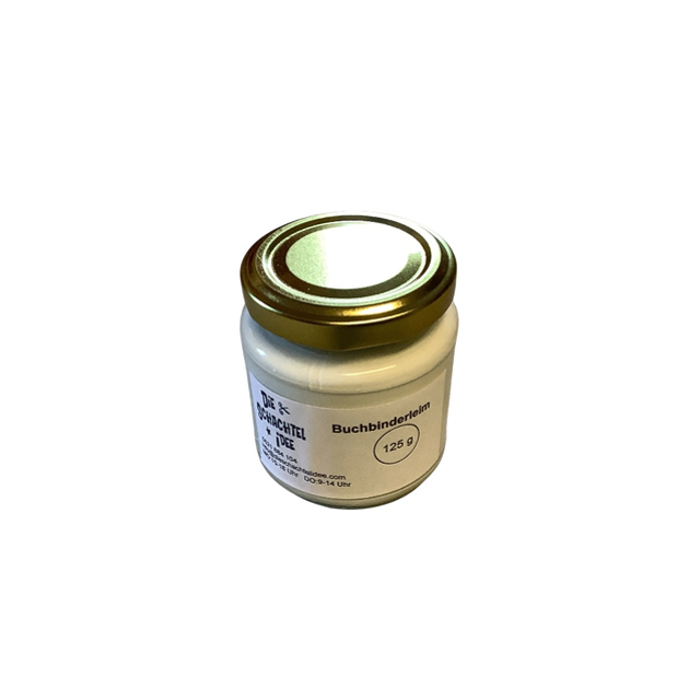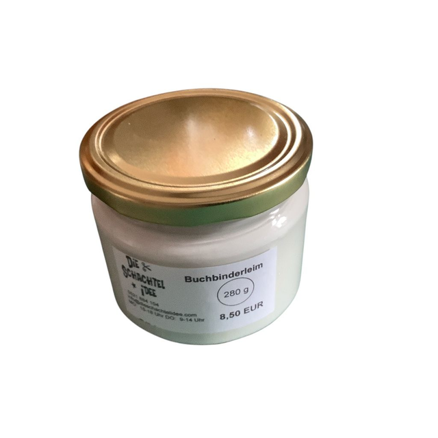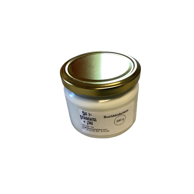 Buchbinderleim, ideal zum Zusammenkleben der Schachteln und zum Aufbringen des Stoffes.