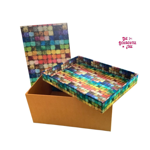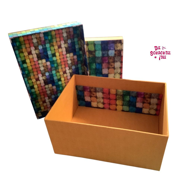 Mosaikstoff auf dem Deckel und im Kasten