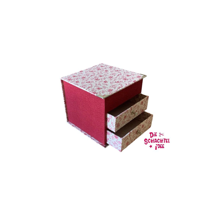 Unikat Mini-Marianne in rosarot mit kleinen Blüten auf den Schubladen,